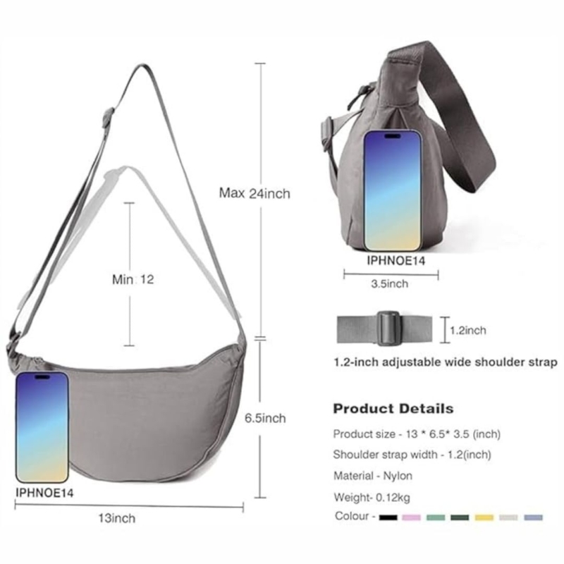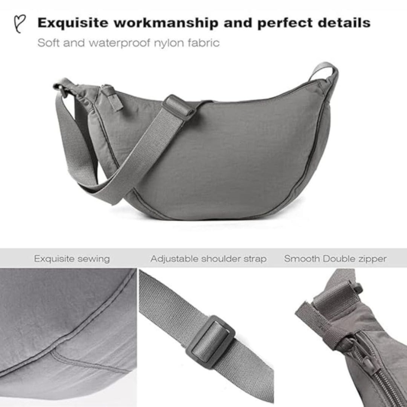 This versatile nylon crossbody bag doubles as a fanny pack, offering convenience for both men and women. Its lightweight dumpling-shaped design makes it perfect for travel, while the spacious interior easily accommodates essentials like your phone, wallet, and keys. With an adjustable strap for a customised fit and durable nylon construction, it is built to withstand daily use and outdoor activities.