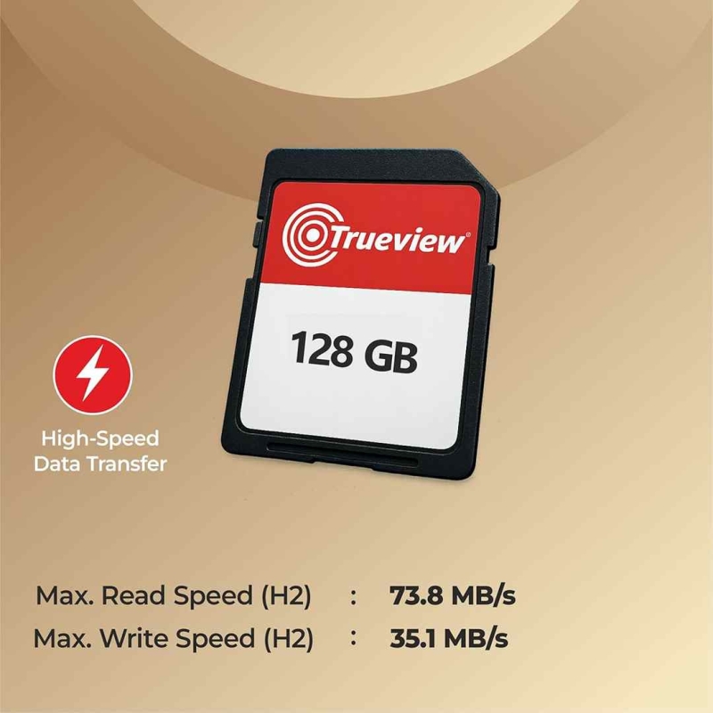 The Trueview 128GB Micro SDHC Memory Card is a high-performance storage solution suitable for cameras, smartphones, tablets, and PCs. With read speeds up to 74 MB/s and write speeds of 73.8 MB/s, it ensures fast data transfer and smooth performance. The card is dustproof, shockproof, and anti-X-ray, making it durable for everyday and industrial use. Its compact design allows easy portability and compatibility with microSDHC and SDHC/SDXC adapters.