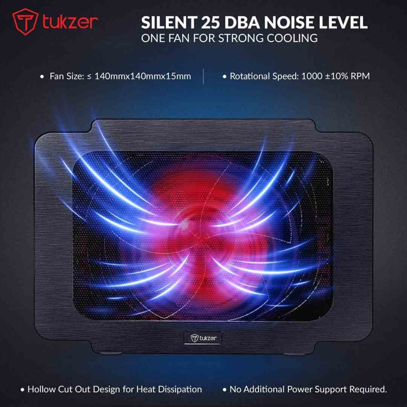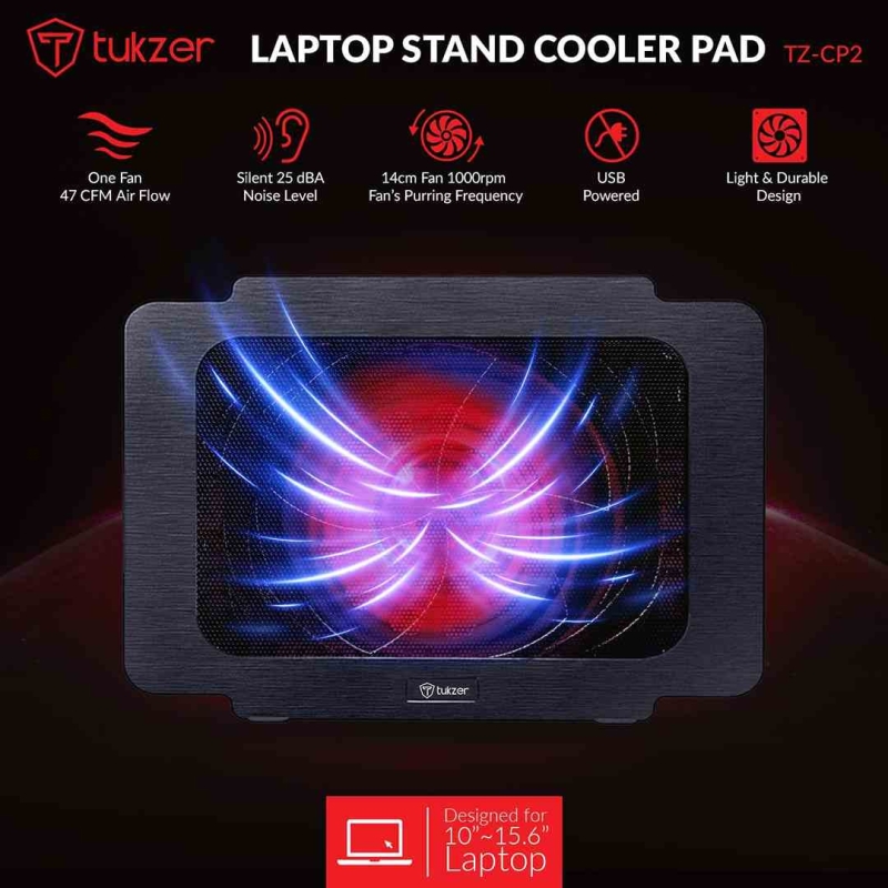 The Tukzer TZ-CP2 Laptop Cooling Pad is a lightweight and ergonomic cooling solution designed to improve airflow and prevent overheating during intensive tasks such as gaming or extended work sessions. Featuring a silent cooling fan, radiator grill design, and USB-powered operation, it ensures efficient heat dissipation while maintaining a quiet and comfortable computing environment. Compatible with laptops up to 15.6 inches and most tablets, it offers versatile and reliable performance.