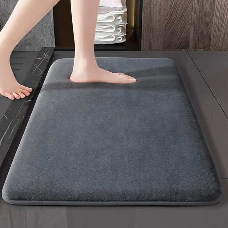 The VAS COLLECTIONS Memory Foam Bath Mat offers soft, luxurious comfort with its plush velvet top and polyurethane foam filling. Designed for modern bathrooms, it features a flat-woven construction, non-slip rubber backing, quick-dry absorbency, and water-repellent performance. Lightweight, stylish, and easy to maintain with machine-washable care, this bath mat is ideal for everyday use and special occasions alike.
