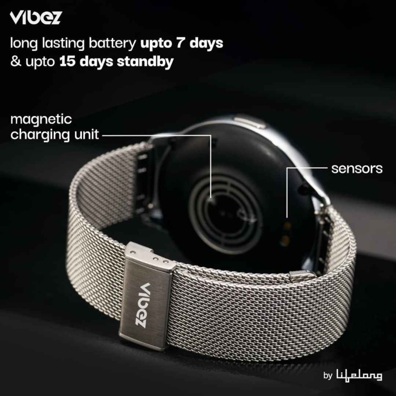 The Vibez by Lifelong Emerald Series Smartwatch (VBSWW72) is a stylish and functional wearable designed for women who want the perfect balance of fashion and fitness. With a bright 1.28” HD display, dual straps for versatility, Bluetooth calling, voice assistant, and 100+ sports modes, this smartwatch empowers you to stay connected and health-focused. Track heart rate, SpO₂, sleep, steps, and more—all while enjoying music and camera controls right from your wrist. Backed by a 7-day battery life and a 1-year warranty.