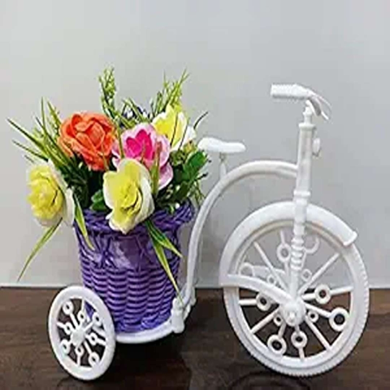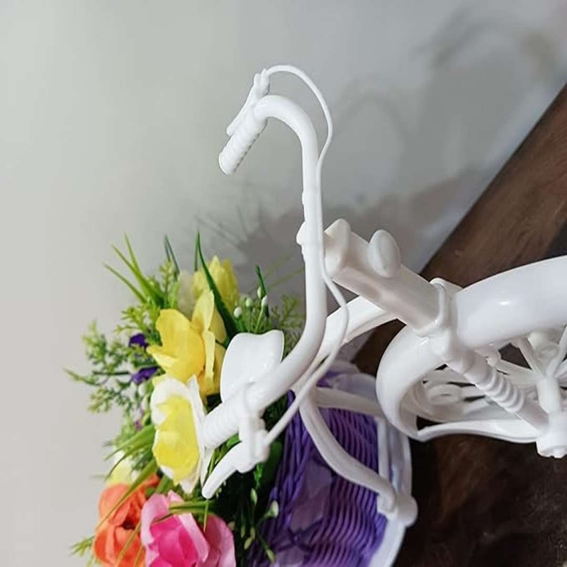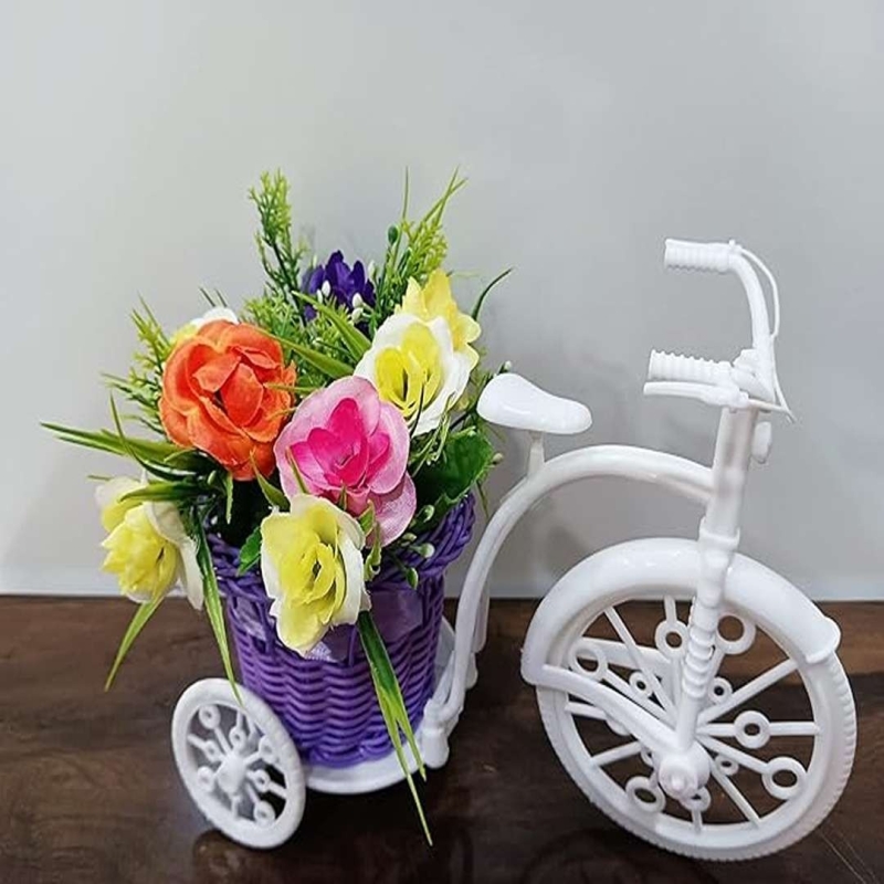This charming VRB Dec cycle-shaped flower vase features a plastic basket filled with artificial flower bunches, making it a perfect decorative accent for living rooms, bedrooms, offices, or gifting. Its vibrant design and easy assembly make it an eye-catching décor piece suitable for any space.
