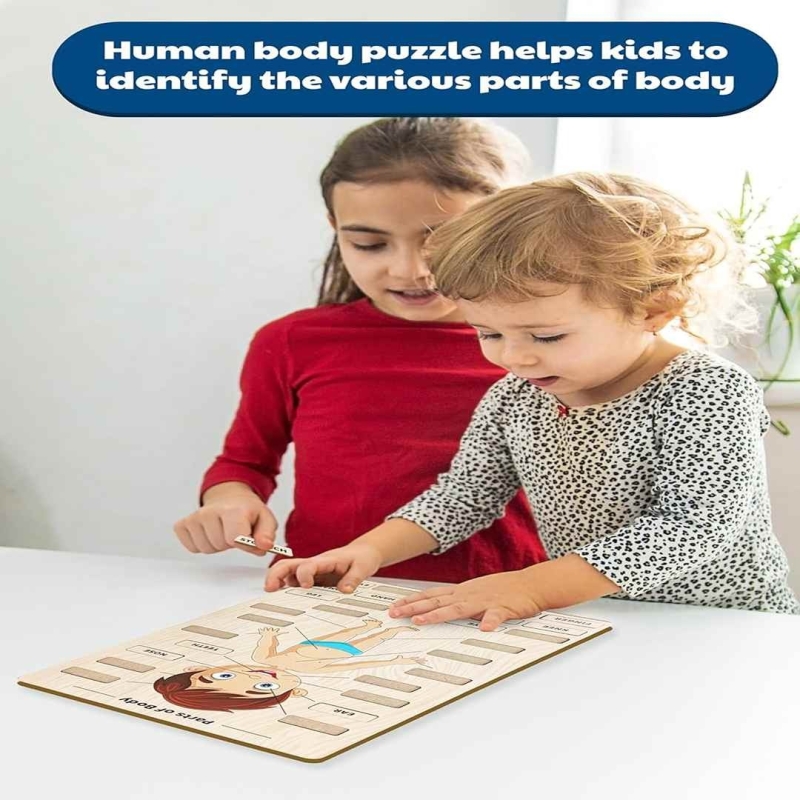 Webby Wooden Jigsaw Puzzle is an educational toy designed for children aged 4 and above. Featuring 15 labeled body part pieces, it promotes anatomical awareness, fine motor skills, and vocabulary through interactive play. Made of premium, child-safe wood, it is colorful, durable, and easy for little hands to handle.