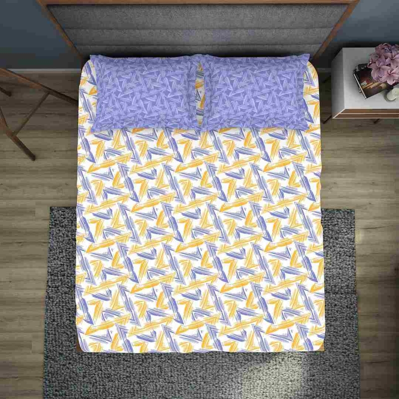Experience comfort, style, and convenience with the Welspun Queen-Size Polycotton Bedsheet Set. Crafted with wrinkle-resistant technology and a soft 200 thread count, this geometric violet bedsheet brings a fresh, elegant look to your bedroom. Designed for durability and easy maintenance, it includes a spacious double bedsheet and two matching pillow covers, beautifully packaged for gifting—ideal for all seasons and any occasion.