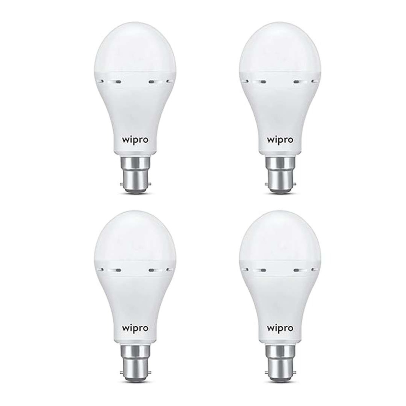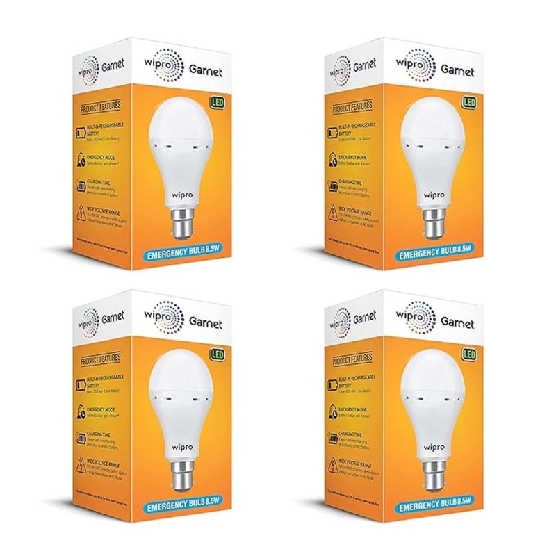 The Wipro Garnet 9W LED Inverter Emergency Bulb (Pack of 4) delivers 810 lumens of bright cool daylight (6500K) with 100 lm/W efficiency. Equipped with a built-in 2200 mAh rechargeable battery, it provides up to 4 hours of backup during power cuts. Durable and energy-efficient, it is suitable for indoor and outdoor use, with a 1-year manufacturer warranty.
