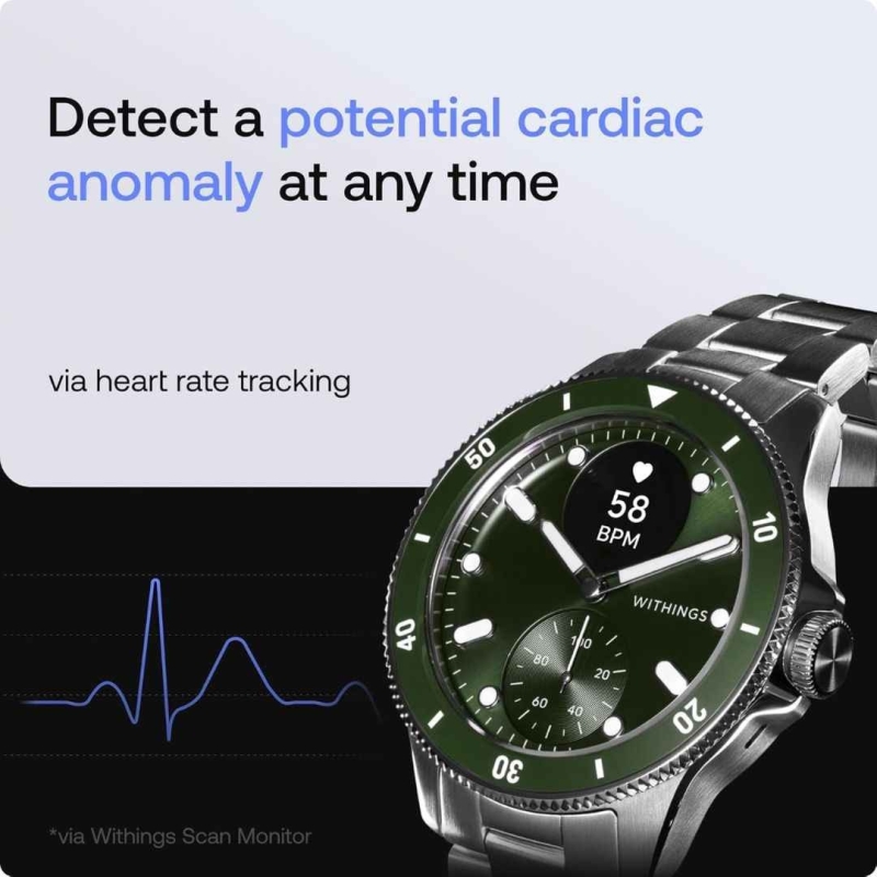 Withings ScanWatch Nova is a premium hybrid smartwatch designed for comprehensive health tracking. Built with advanced sensors and a sleek stainless-steel design, it offers medical-grade ECG, continuous heart rate monitoring, 24/7 body temperature tracking, SpO₂, sleep analysis, menstrual tracking, and automatic activity recognition for over 40 exercises. The Nova series blends style with substance, featuring long battery life, Bluetooth connectivity, and compatibility with Android and iOS. Ideal for users looking for both performance and elegance.