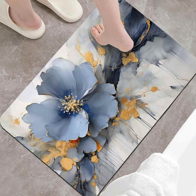 The Yellow Weaves 3D Blue Flower Bath Mat is a high-quality, indoor water-absorbing mat designed for safety, comfort, and style. Made with a multi-layer construction including soft tech fabric, diatomaceous earth for quick drying, recycled sponge for cushioning, and a non-slip rubber bottom, it ensures a dry, slip-free experience. Easy to clean and machine washable, this mat adds a touch of floral elegance to your bathroom, bedroom, or living area.