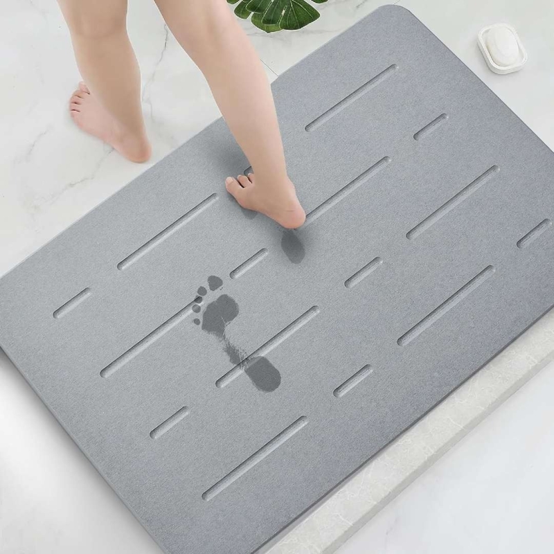 The Yellow Weaves Stone Bath Mat is a high-pile, eco-friendly diatomite mat designed to keep your bathroom floor dry and safe. With a quick-drying, non-slip surface and minimalist design, it adds elegance while offering practical functionality. Easy to clean and built for durability, this mat is perfect for modern bathrooms.