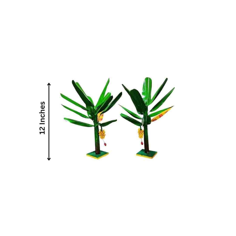 Artificial Banana Tree for Pooja - Metal Banana Trees for Decoration (12 Inches) indian handicrafts home decor pooja decor crafts golu decor 1 pair tree.