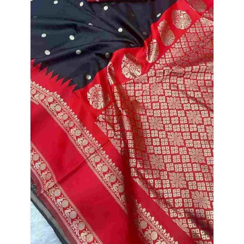 The saree measures 5.50 meters in length and comes with an attached 0.80-meter unstitched blouse piece, allowing you to tailor it to your preferred style and fit. Its carefully woven fabric ensures that the saree is non-transparent, offering both elegance and comfort.