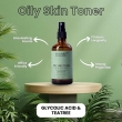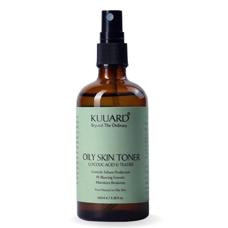 Kuuard Oil-control toner with Glycolic Acid, Tea Tree, Liquorice, and Green Tea that helps fight pimples, control excess oil, tighten pores, and reduce pigmentation while keeping skin fresh. Suitable for oily and acne-prone skin for daily use.